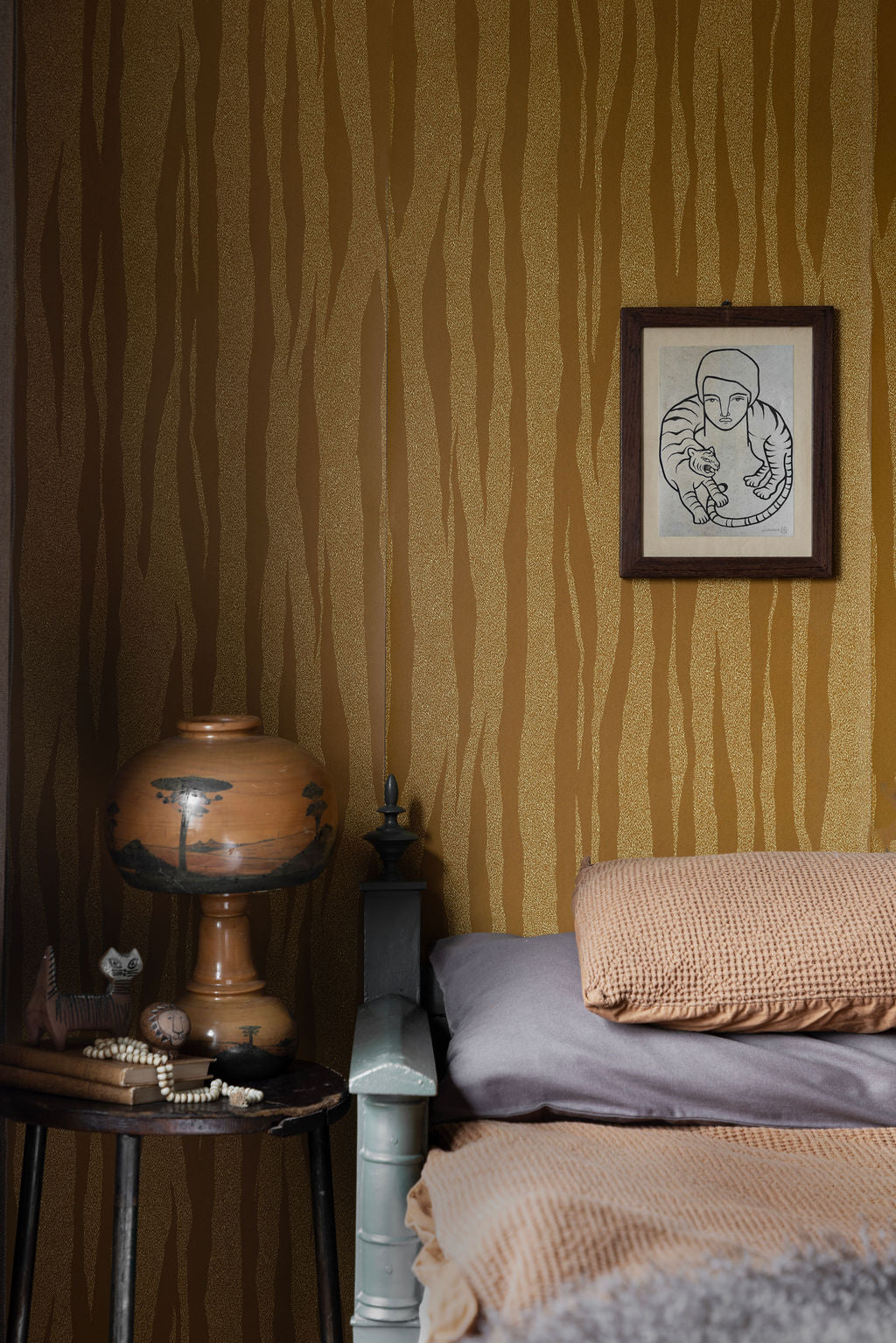 Savannah är mitt sätt att ge randen nytt liv,” säger designern Lisa Bengtsson. “Jag har inspirerats av tigerns kraft och elegans, med en varm, gul ton som lyfter rummet.” Djurmönster är en självklar del av Studio Lisa Bengtssons uttryck – och nu är det tigerns tur att ta plats. En form av rand, men med vild energi.