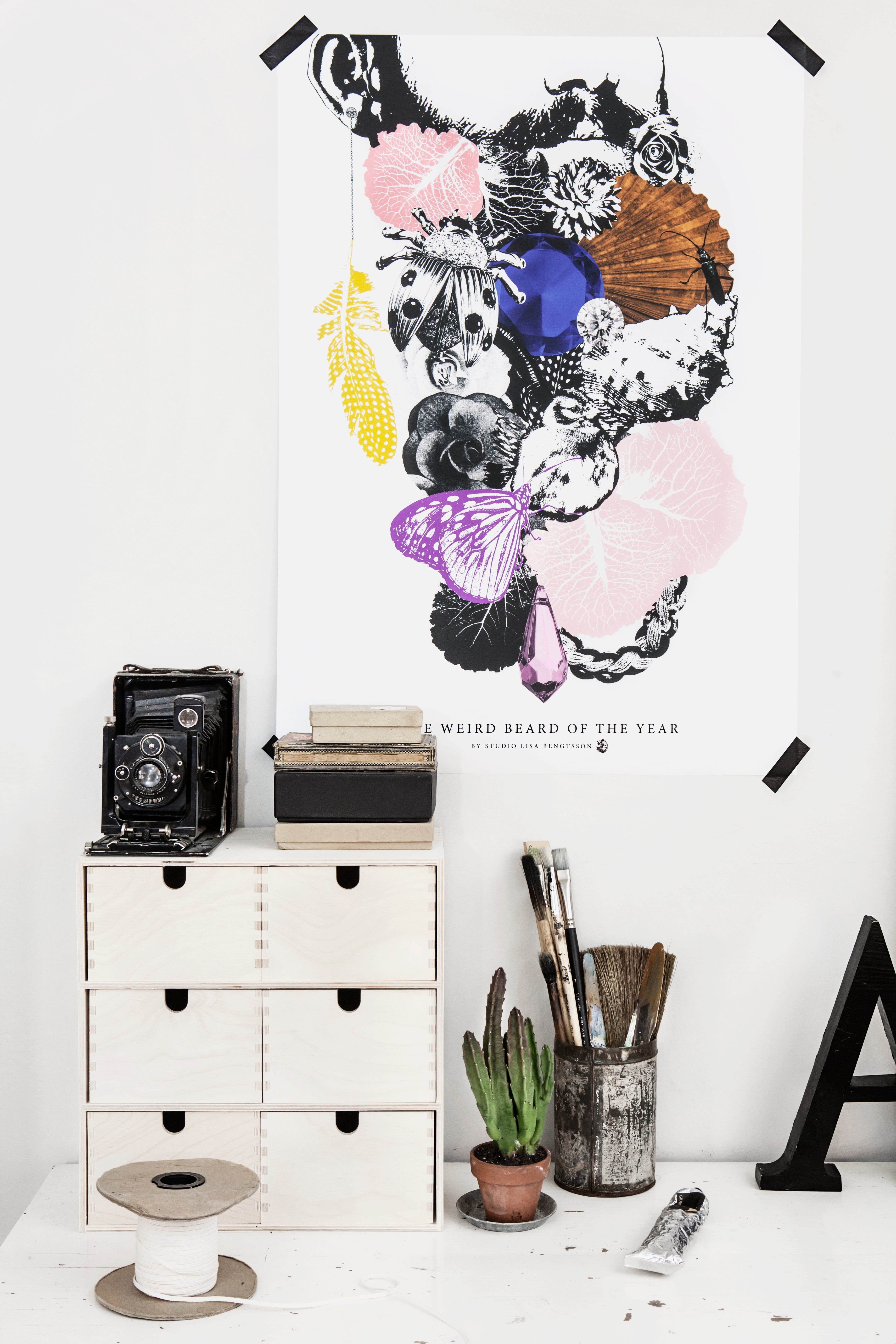 A tribute to Italy and its beauty. Previously launched as a fabric in completely different colors, this pattern with its lovely flowers and fruits offers a new twist in true Studio Lisa Bengtsson style with a small insect hidden among the lush plants. Now the pattern is also available as wallpaper in wonderfully magical blue and a green tone.