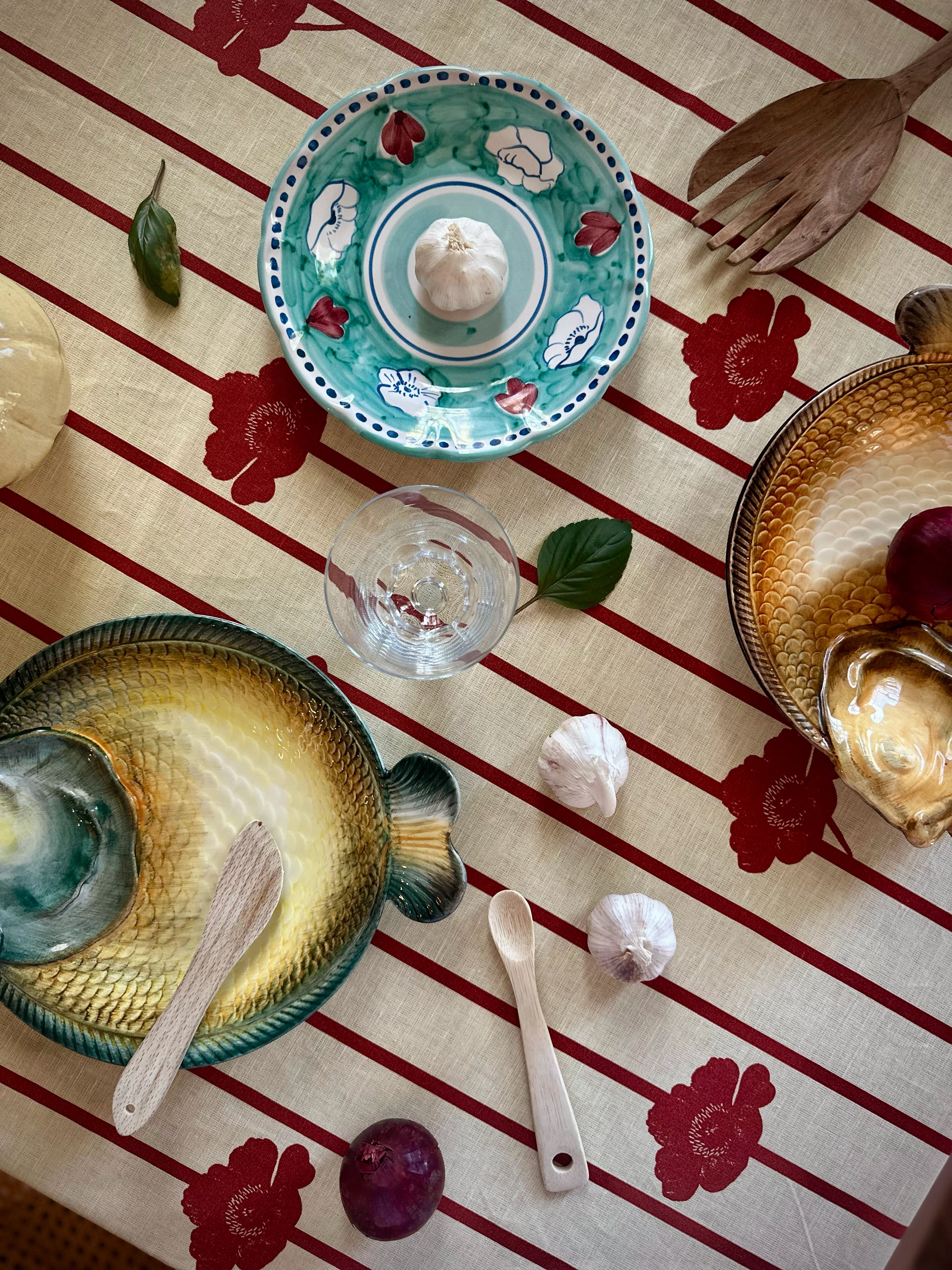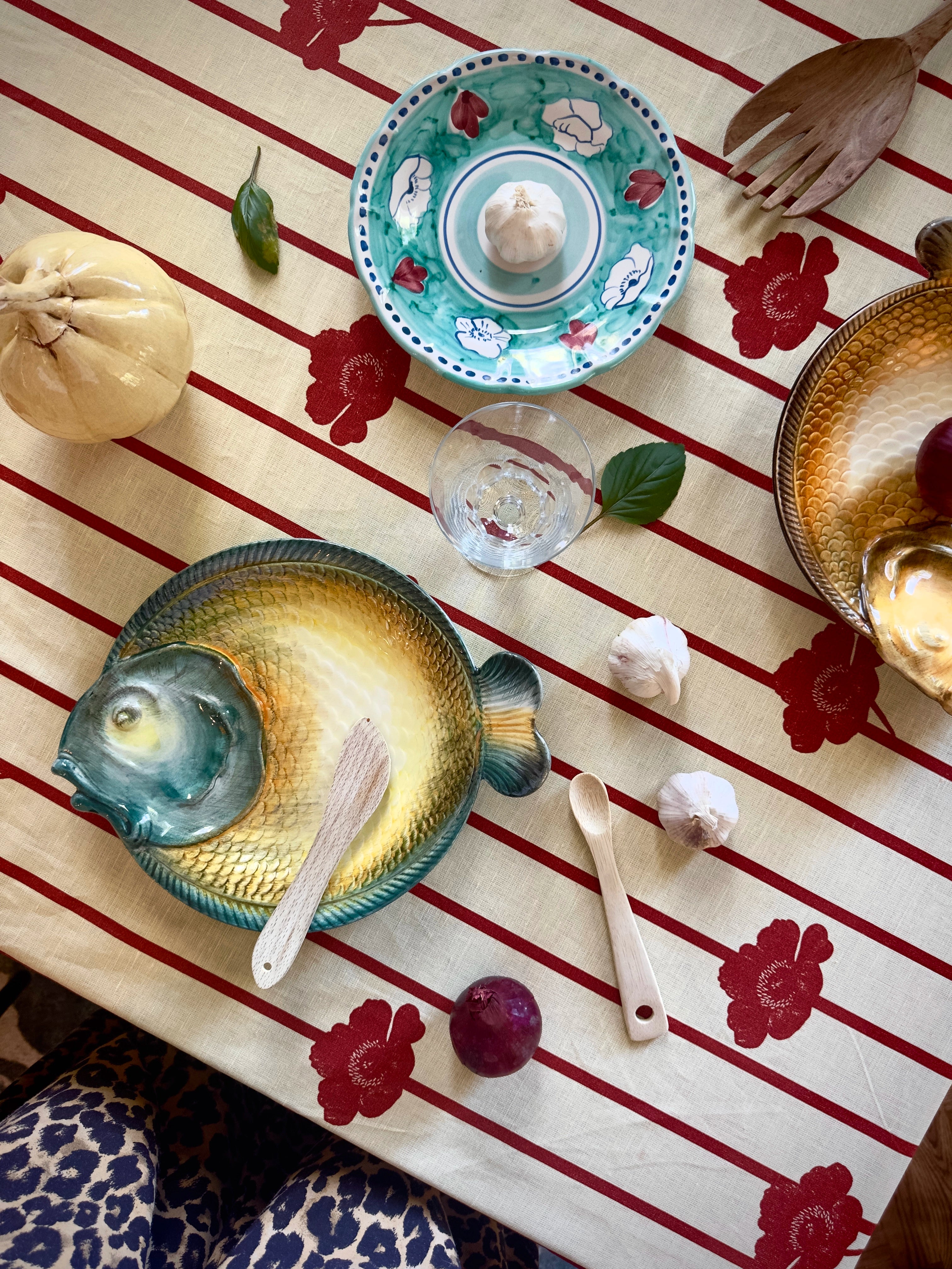 En hyllning till Italien och dess skönhet. Tidigare lanserat som tyg i helt andra färger, bjuder detta mönster med sina härliga blommor och frukter på en ny twist i äkta Studio Lisa Bengtsson-stil med en liten insekt gömd bland de frodiga växterna. Nu finns mönstret även som tapet i underbart magiska blå samt en gröna ton.