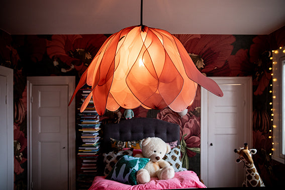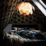 En hyllning till Italien och dess skönhet. Tidigare lanserat som tyg i helt andra färger, bjuder detta mönster med sina härliga blommor och frukter på en ny twist i äkta Studio Lisa Bengtsson-stil med en liten insekt gömd bland de frodiga växterna. Nu finns mönstret även som tapet i underbart magiska blå samt en gröna ton.