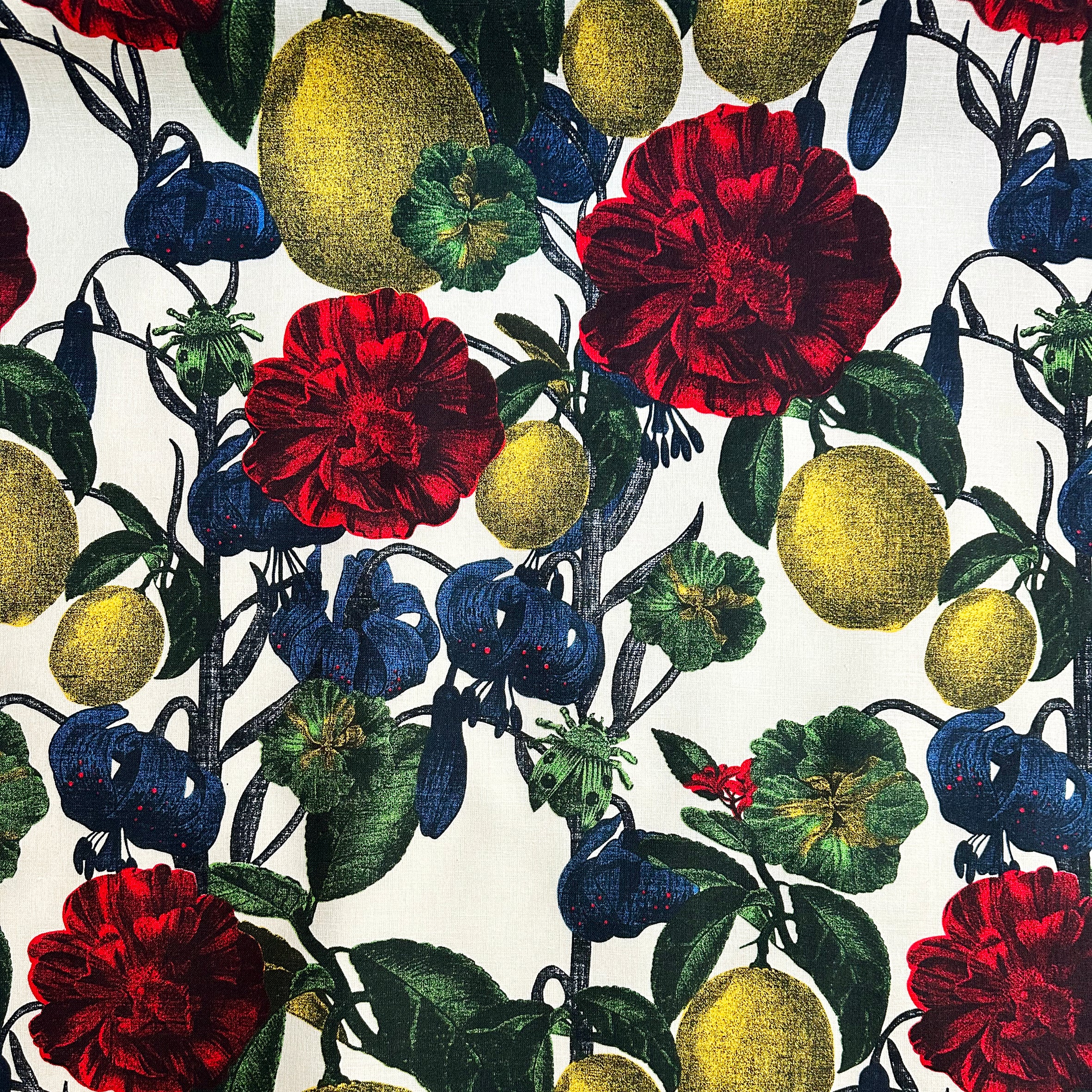 En hyllning till Italien och dess skönhet. Tidigare lanserat som tyg i helt andra färger, bjuder detta mönster med sina härliga blommor och frukter på en ny twist i äkta Studio Lisa Bengtsson-stil med en liten insekt gömd bland de frodiga växterna. Nu finns mönstret även som tapet i underbart magiska blå samt en gröna ton.