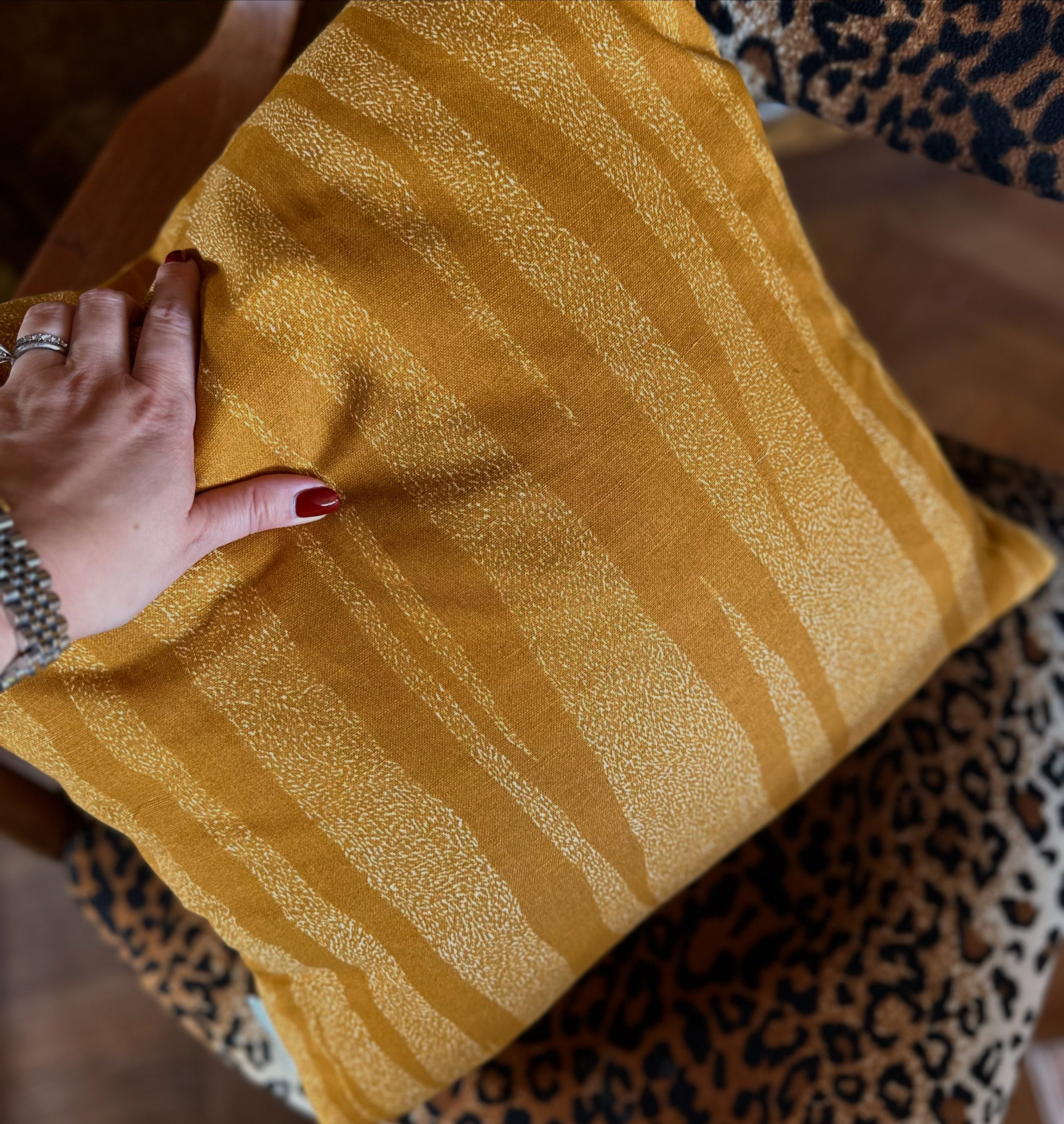 Savannah är mitt sätt att ge randen nytt liv,” säger designern Lisa Bengtsson. “Jag har inspirerats av tigerns kraft och elegans, med en varm, gul ton som lyfter rummet.” Djurmönster är en självklar del av Studio Lisa Bengtssons uttryck – och nu är det tigerns tur att ta plats. En form av rand, men med vild energi.