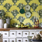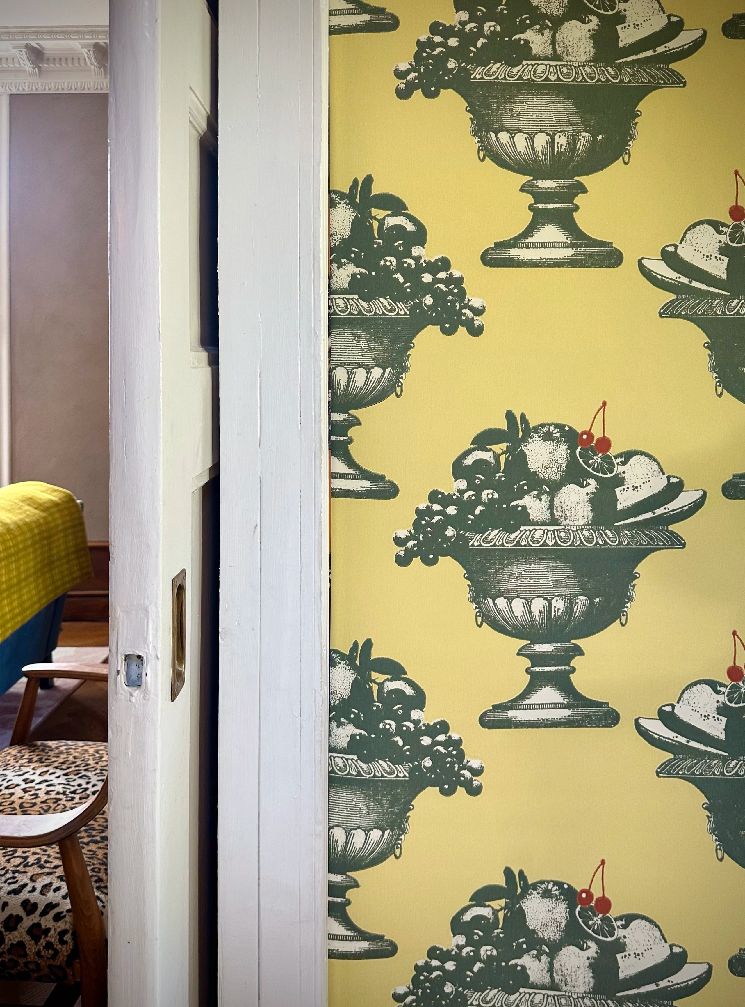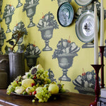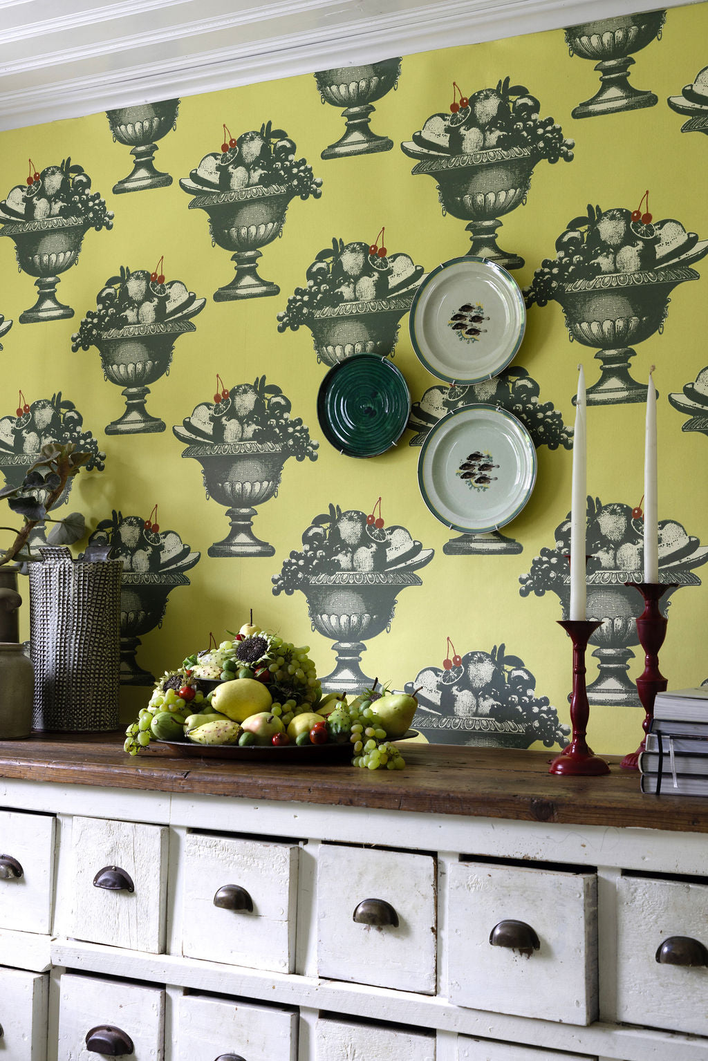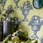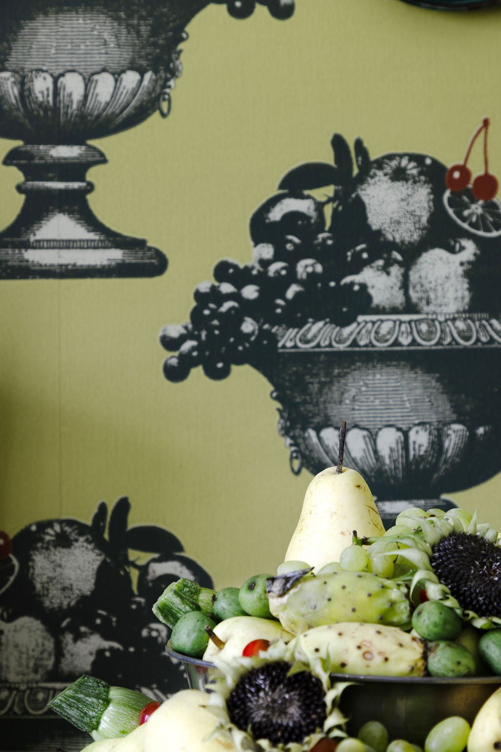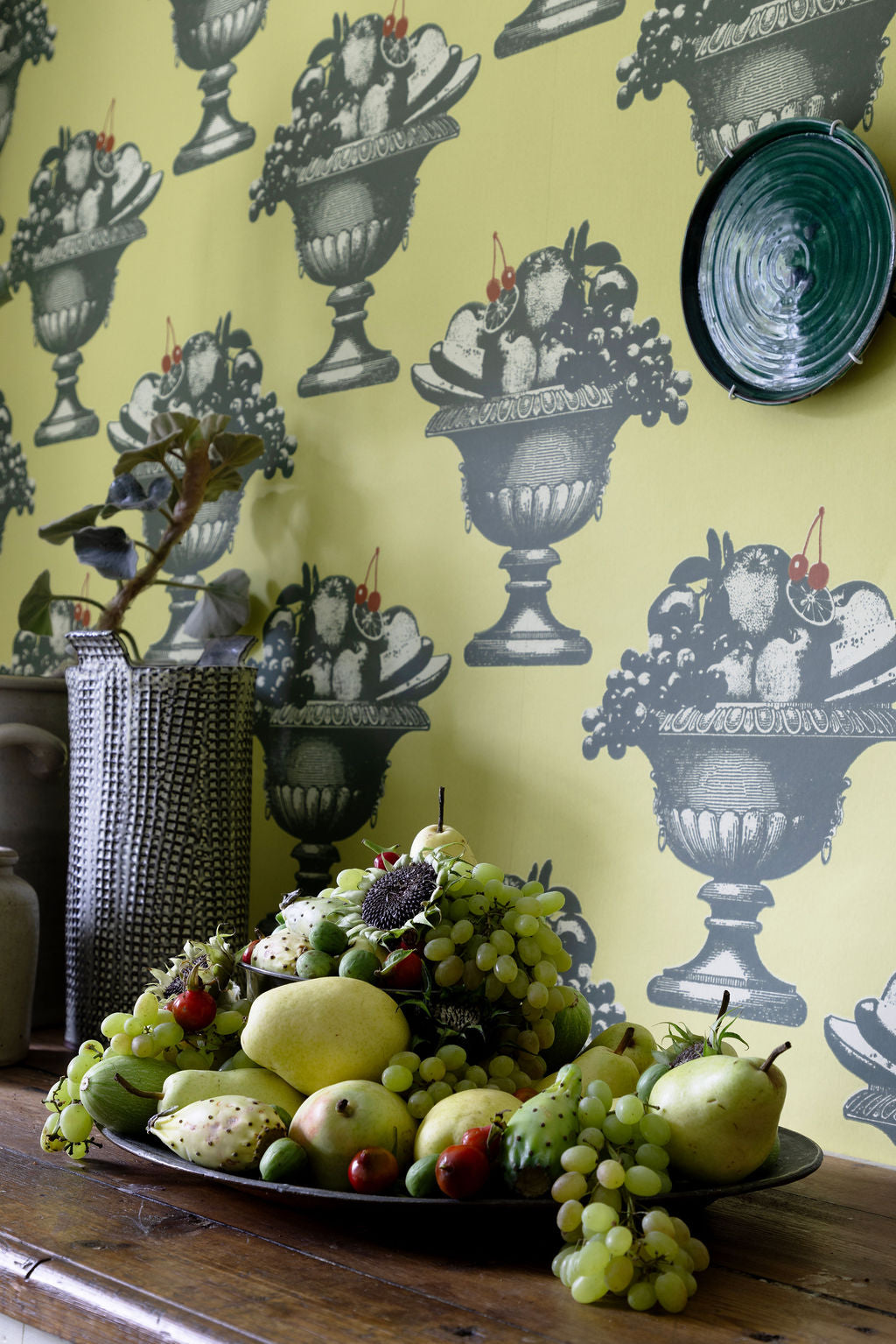 En hyllning till Italien och dess skönhet. Tidigare lanserat som tyg i helt andra färger, bjuder detta mönster med sina härliga blommor och frukter på en ny twist i äkta Studio Lisa Bengtsson-stil med en liten insekt gömd bland de frodiga växterna. Nu finns mönstret även som tapet i underbart magiska blå samt en gröna ton.