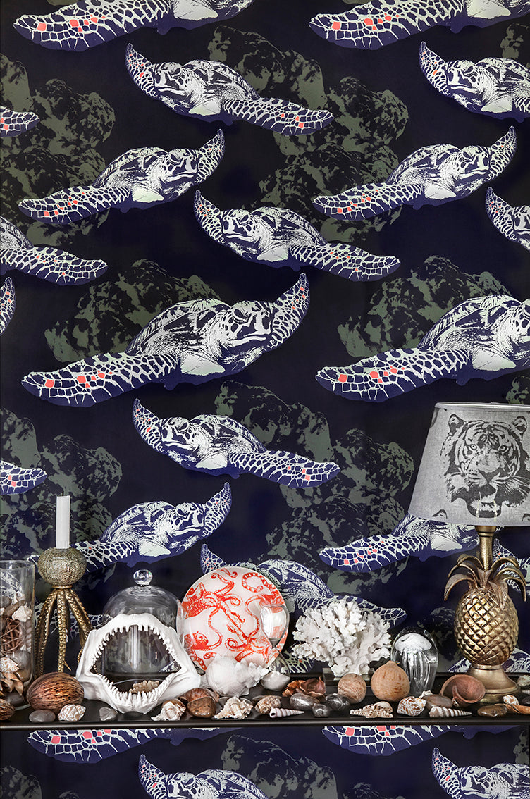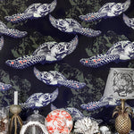 En hyllning till Italien och dess skönhet. Tidigare lanserat som tyg i helt andra färger, bjuder detta mönster med sina härliga blommor och frukter på en ny twist i äkta Studio Lisa Bengtsson-stil med en liten insekt gömd bland de frodiga växterna. Nu finns mönstret även som tapet i underbart magiska blå samt en gröna ton.